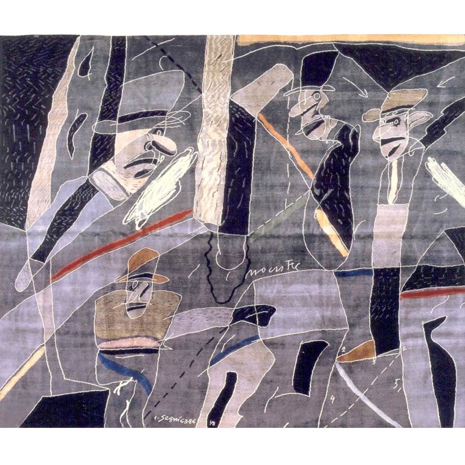 The Modern Masters Tapestries Gallery proudly presents a remarkable collection of rugs that exquisitely capture the essence of Antonio Seguí’s renowned artistic legacy. This meticulously curated selection invites viewers to embark on a captivating journey into the heart of Seguí’s world, where urban life, social commentary, and a dash of whimsicality intertwine to create mesmerizing visual narratives.