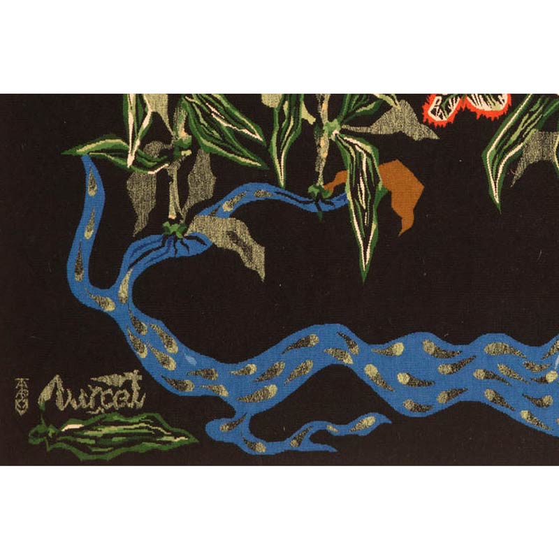 “Cotonou Noir” stands as a testament to Lurçat’s deep connection to African art, evident in the tapestry’s geometric patterns and symbolic elements. These motifs reflect Lurçat’s fascination with traditional African art while adding his own contemporary interpretation, seamlessly blending cultural influences.