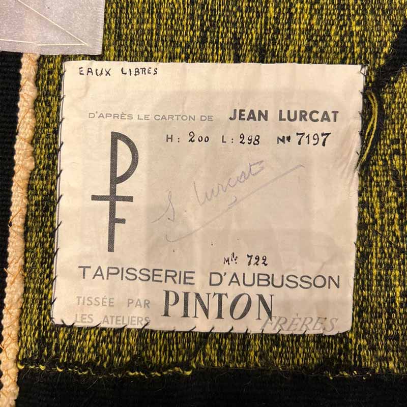 The “Eaux Libres” tapestry was carefully woven at Atelier Pinton, a renowned workshop specializing in the creation of high quality tapestries. The artisans of the workshop used their expertise and mastery of traditional weaving techniques to bring Lurçat’s original design to life. The work itself evokes a vibrant and eventful aquatic landscape. The organic and abstract shapes unfold fluidly, creating a sensation of moving water. Carefully chosen colors, in shades of blues and greens, capture the essence of open waters, creating an atmosphere that is both calm and vibrant.