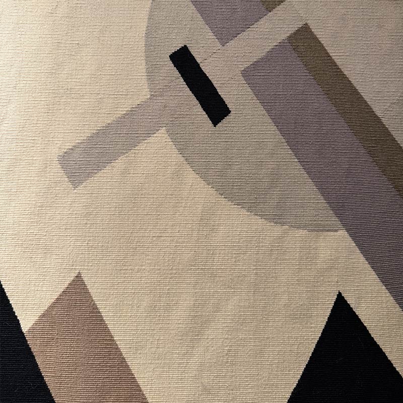 Léger’s use of Suprematist and Purist influences is evident in the clarity of form and structured abstraction. Yet, she brings a warmth and sensuality to her compositions through her vibrant palette and soft textile medium. The translation of her bold visual motifs into woven wool adds depth and texture, offering a monumental and tactile dimension to her abstract vocabulary.
